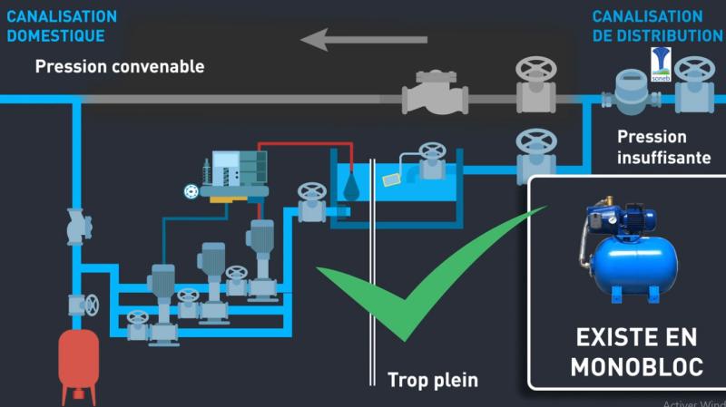 La vidéo au dessus, montre en détail les différents éléments constitutifs d'une installation de surpression.